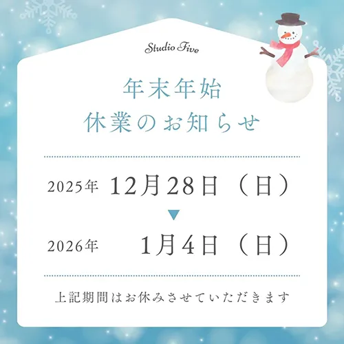 STUDIO FIVE&STUDIO66 年末年始休業日のお知らせ
