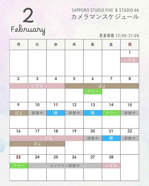 2月カメラマンスケジュール🍫